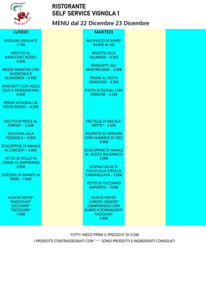PRANZO AL VIGNOLA 1 SELF SERVICE (anche da asporto)